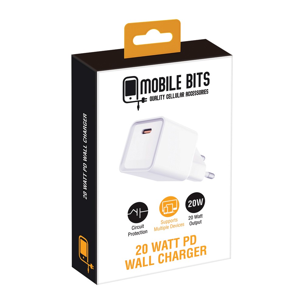 Fast, compact, and reliable—the Mobile Bits Retail 20W Type-C Wall Charger is built for modern charging needs. Featuring Power Delivery (PD) technology, it ensures rapid charging for compatible smartphones, tablets, and other USB-C devices. Advanced circuit protection keeps your devices safe from overcharging and overheating, making it the ideal charger for everyday use.
