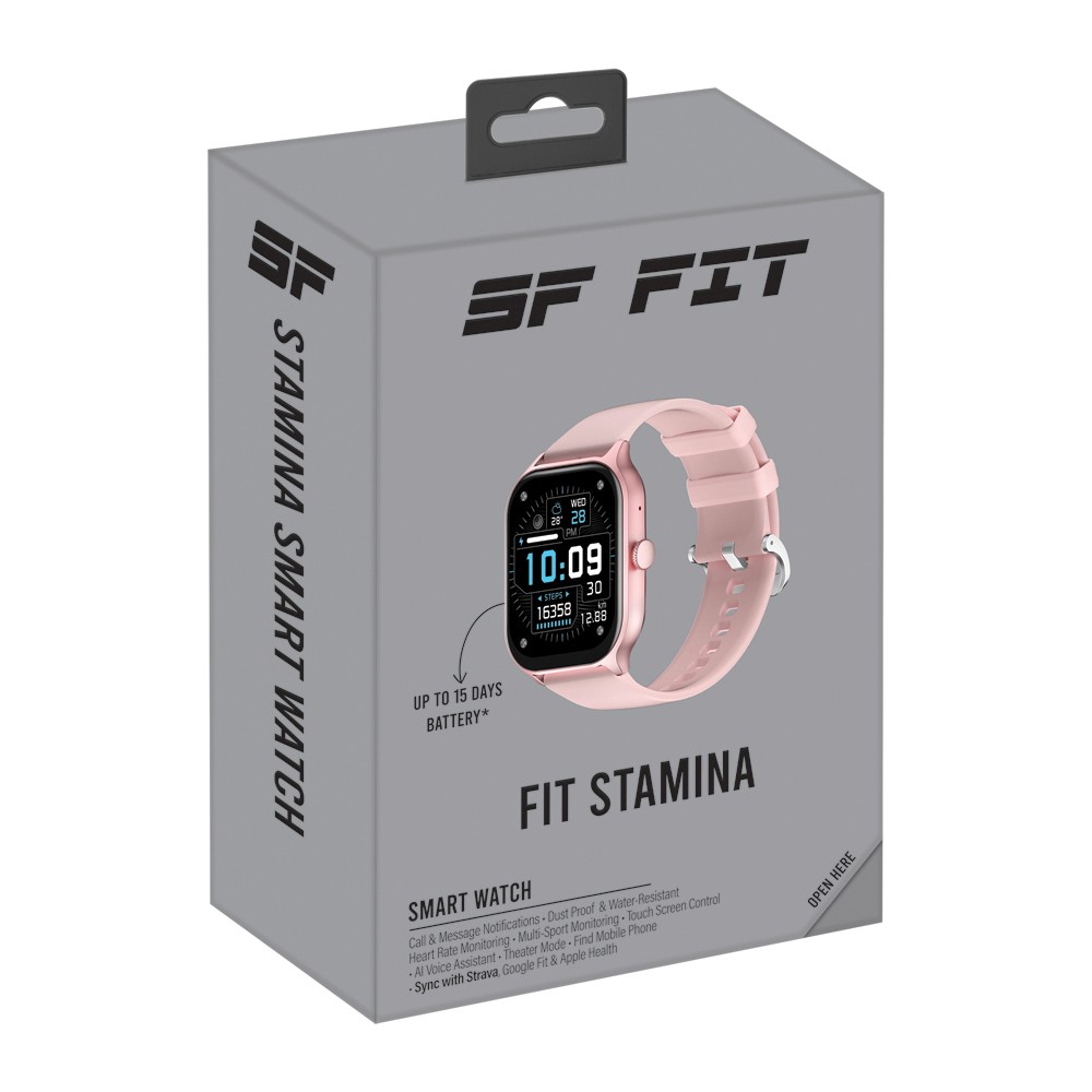 Push your limits with the SF FIT Stamina Smart Watch — built to keep pace with your lifestyle. Track your workouts, monitor your health, and stay connected with Bluetooth calling, GPS support, and AI voice control. Its vibrant 2.01” TFT touch display and over 100 sport modes give you precise fitness insights, while the durable 1ATM waterproof design ensures it’s ready for every challenge — from training days to recovery days.