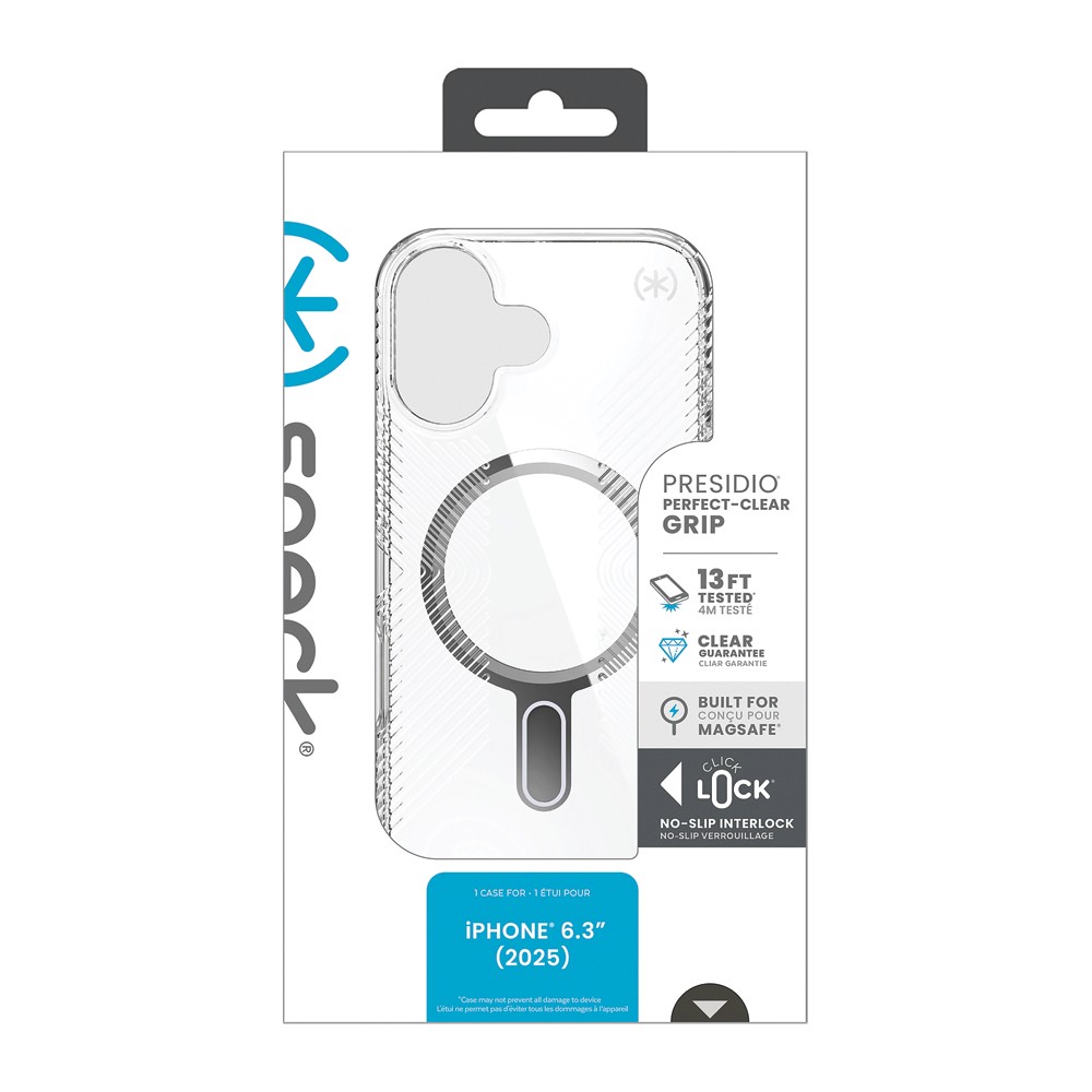 Presidio Grip ClickLock delivers serious drop protection with Speck’s iconic no-slip grip for confident handling. Built-in ClickLock magnets ensure secure alignment with compatible accessories while keeping your phone protected and comfortable to hold.