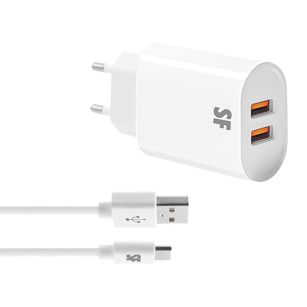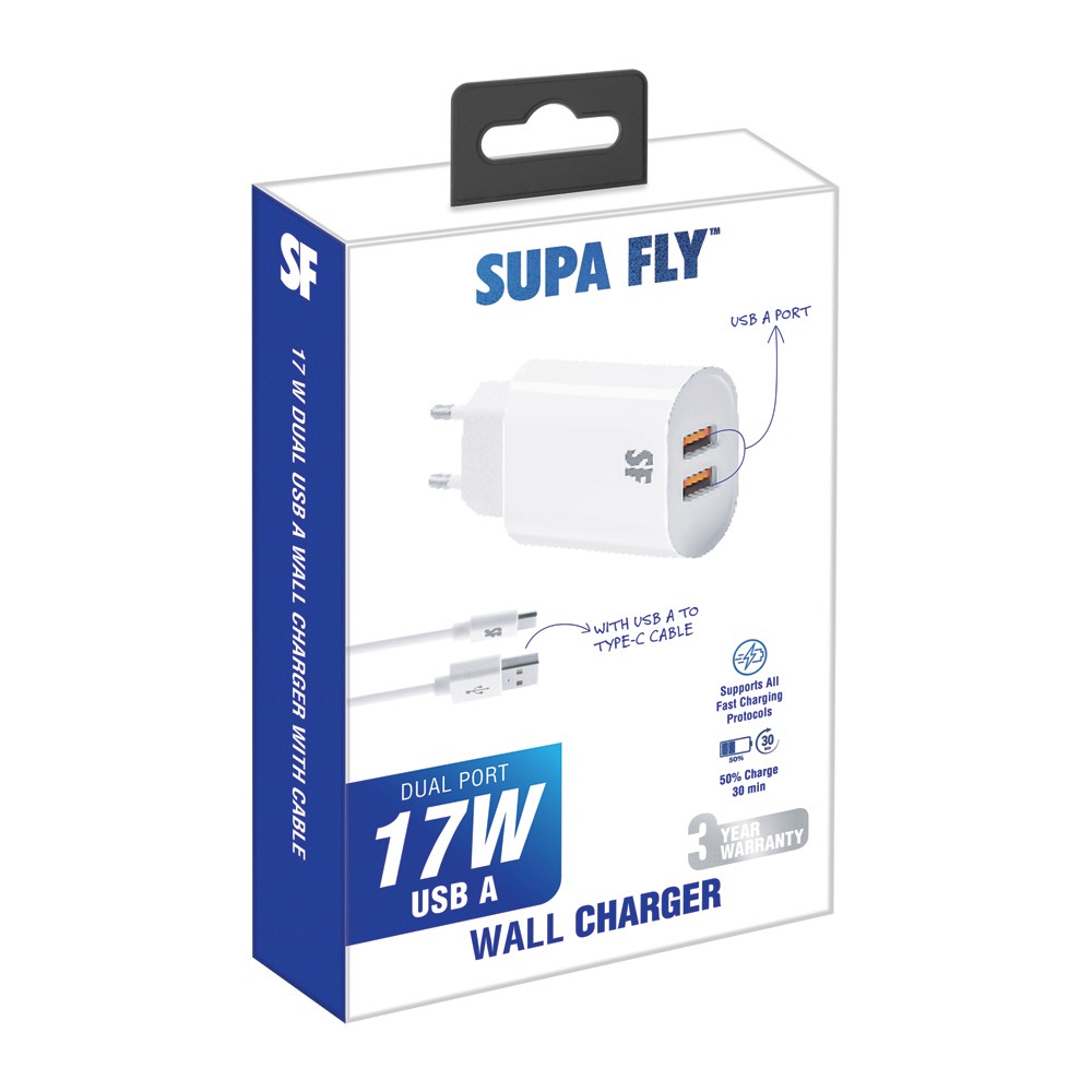 17W DUAL USB A Wall Charger with USB A to Type-C Cable