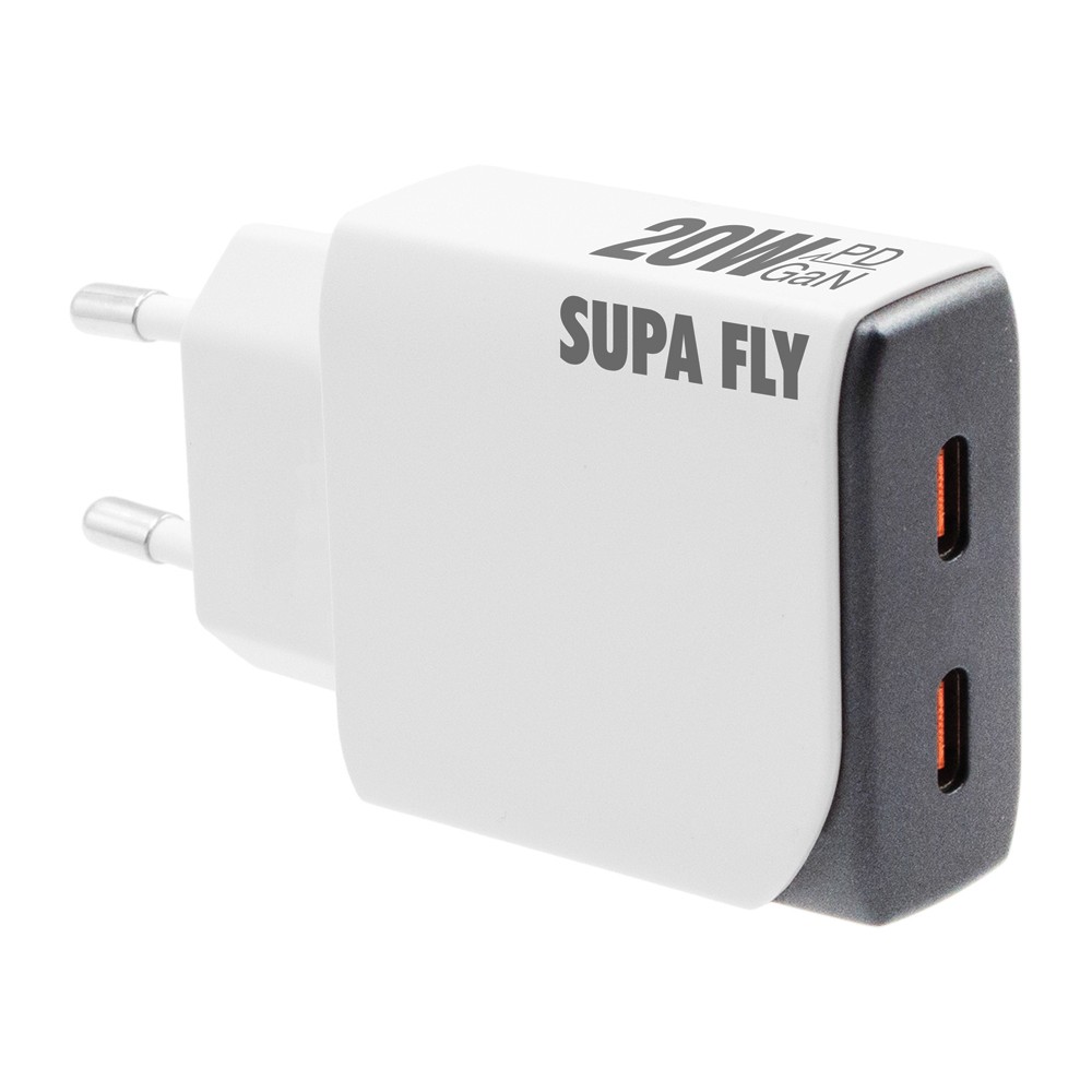 The Supa Fly 20W Dual C + C Port Slim Wall Charger is your compact all-in-one charging solution. With a sleek ultra-thin design and dual outputs, it delivers fast, efficient charging powered by GaN, PD, and PPS technology. Perfect for smartphones, tablets and more