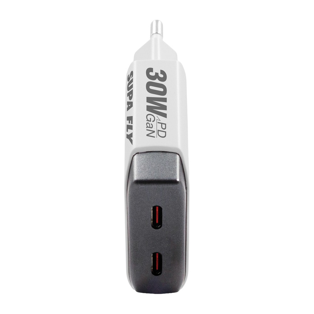 The Supa Fly 30W Dual C + C Port Slim Wall Charger is your compact all-in-one charging solution. With a sleek ultra-thin design and dual outputs, it delivers fast, efficient charging powered by GaN, PD, and PPS technology. Perfect for smartphones, tablets and more