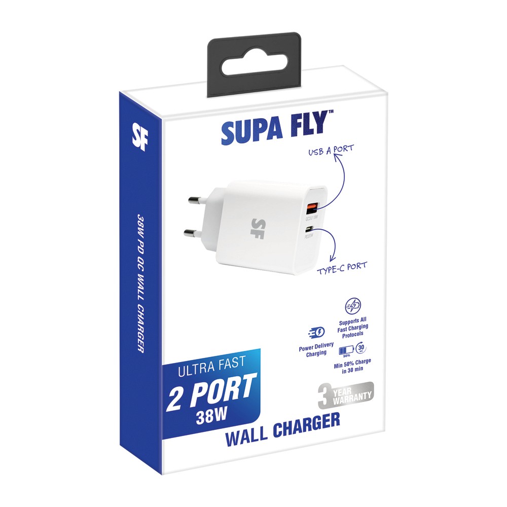 Compact, powerful, and travel-ready: the Mobile Bits 38W Dual USB Wall Charger is designed for fast and efficient charging. With a 20W USB-C Power Delivery port and an 18W USB-A Quick Charge port, it delivers a total of 38W to keep your devices charged at maximum speed. Whether at home or on the go, this dual-port charger is a must-have for powering smartphones, tablets, and more.