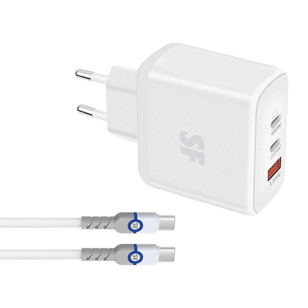 65W 3 Port USB A & Type-C Wall Charger with Type-C to Type-C Cable