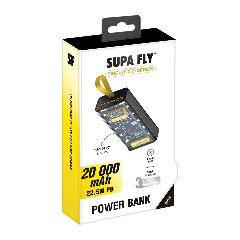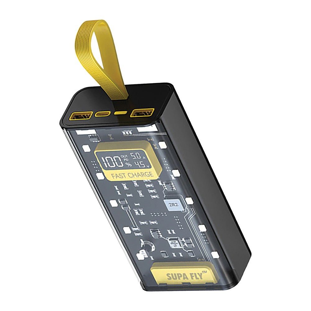 Charge in style with this transparent 22.5W PD 20 000mAh Power Bank. With 3 output ports and smart voltage adjustment, it powers multiple devices efficiently. The LCD screen displays battery life and charging rate, while built-in LED lights offer 3 brightness settings. A sleek design with circuit protection ensures safe, fast charging on the go.