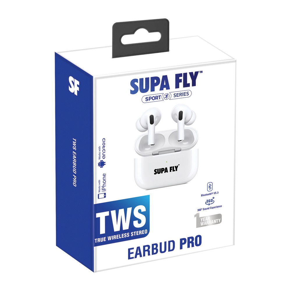 Whether worn individually or as a pair, the Supa Fly Earbud Pro delivers crystal-clear audio with Bluetooth 5.3 + EDR and advanced noise cancellation to keep your music crisp and calls clear. Designed for active lifestyles, these earbuds feature a sweat-resistant build, lightweight design, and sport ear gels for a secure, comfortable fit. Enjoy up to 3 hours of playback with fast Type-C charging and smart device integration for effortless control wherever you go.