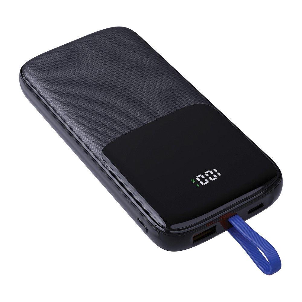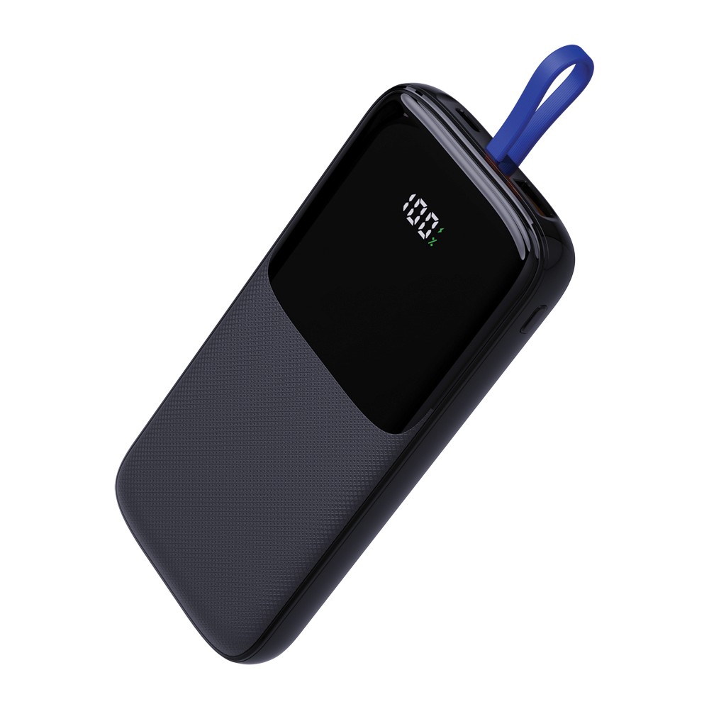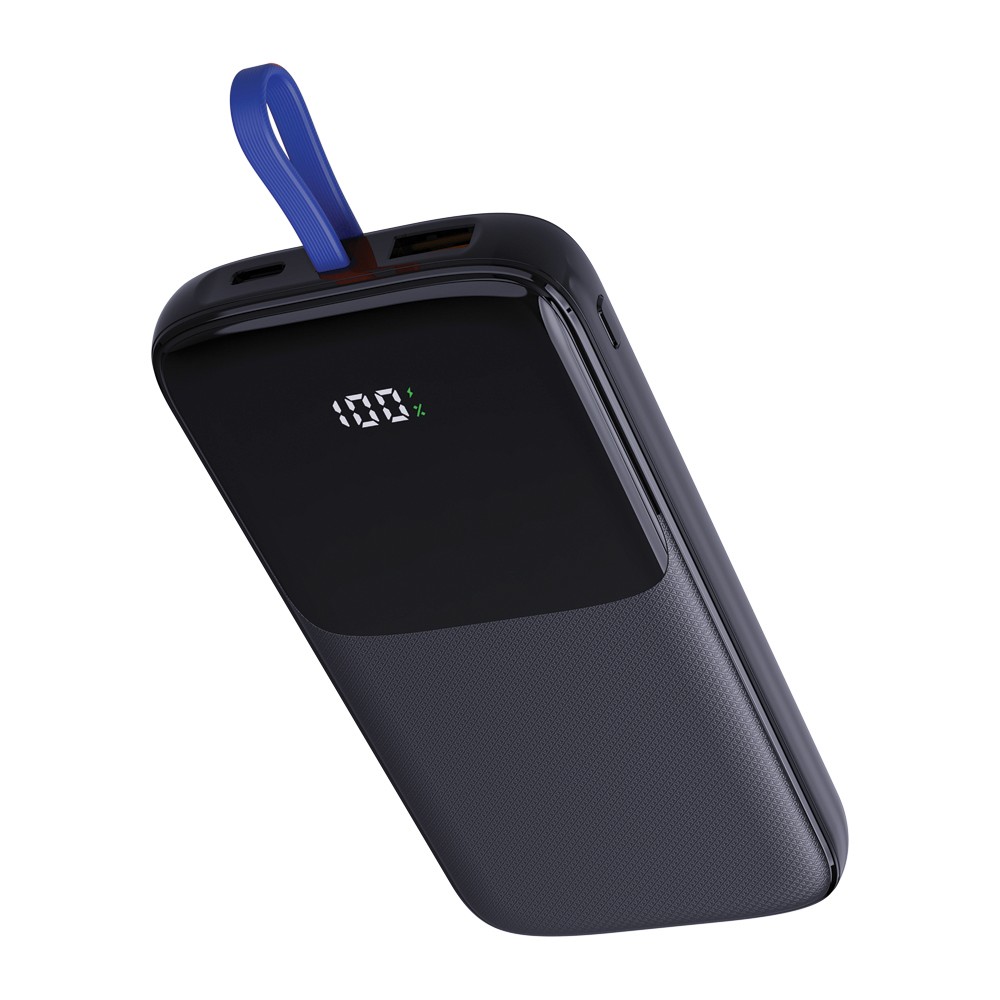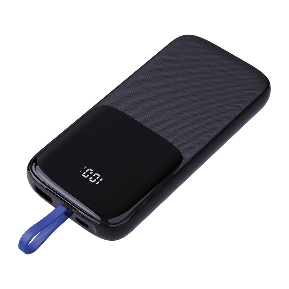 This compact power bank features 22.5W fast charging, a built-in Type-C cable, and dual output ports for added convenience. The LCD digital indicator displays remaining power, while circuit protection and a polymer lithium battery ensure safe, efficient charging wherever you go.