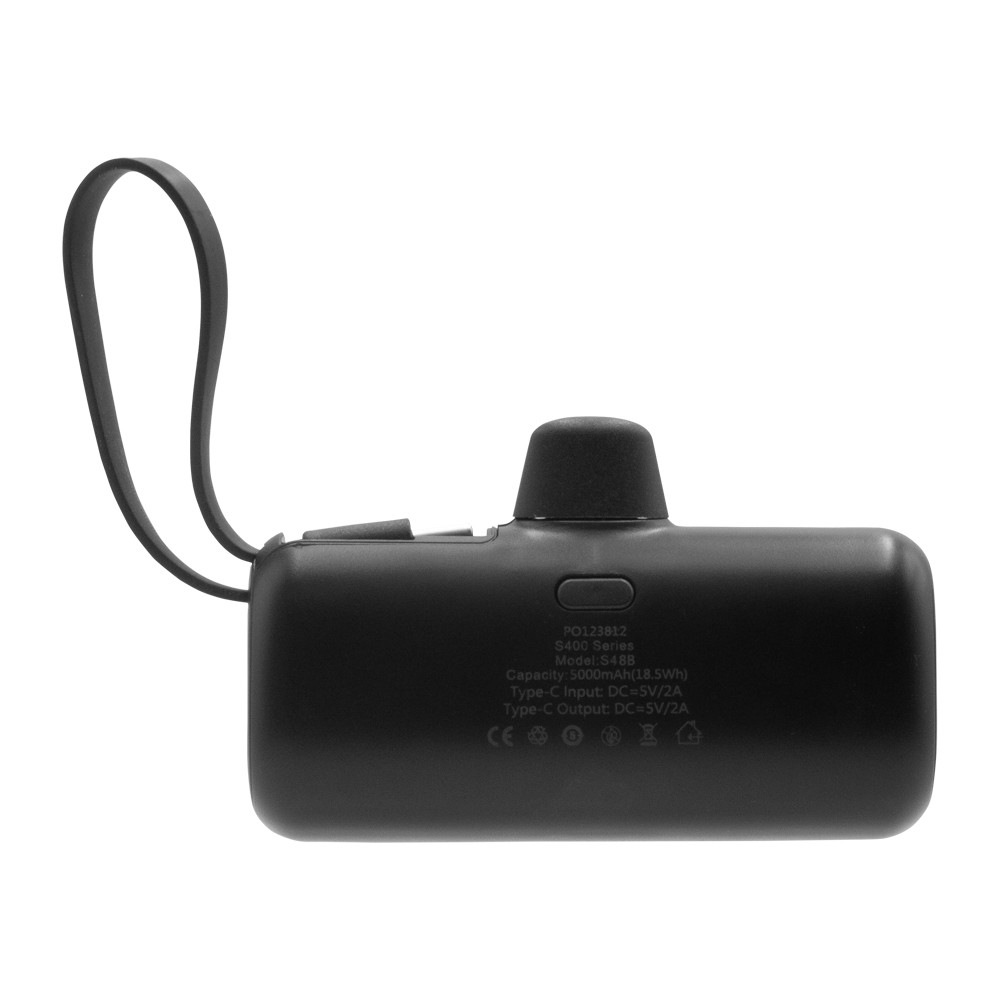 Introducing a mini Power Bank specifically designed for Type-C smart phones. It comes with a built-in Type-C cable. This charging solution is small, powerful, compact and convenient. The 5 000mAh high-quality battery is a perfect backup power supply for daily use. Its ultra-compact size makes it easy to carry in a purse or pocket. It also has a safe circuit design to preventover-charging, short-circuit and over-discharge.