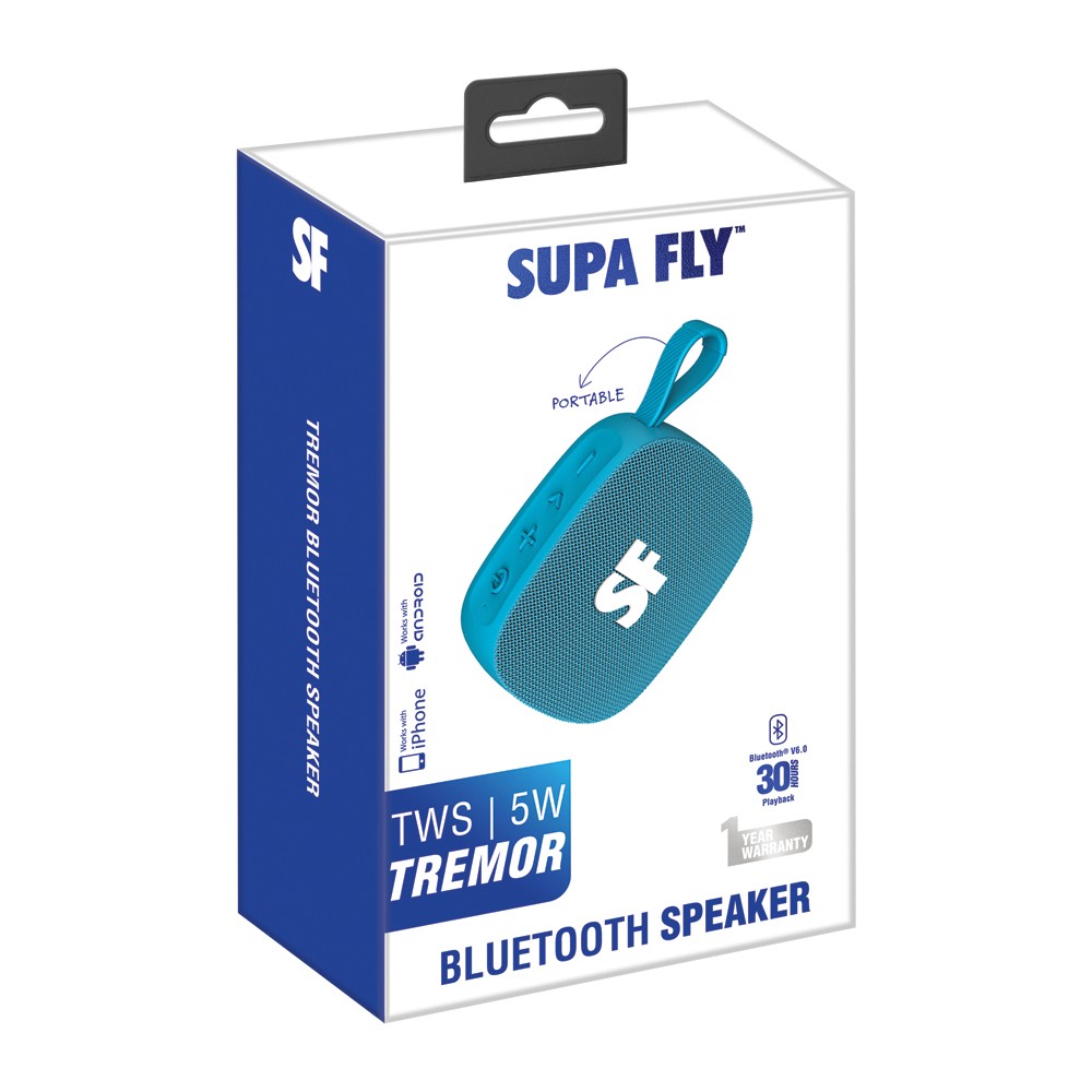 Take the beat further with the Supa Fly Tremor Speaker. Delivering bold, balanced sound from 52mm drivers, the Tremor brings 30 hours of non-stop Bluetooth 6.0 playback. Rugged IPX4 resistance and TWS pairing make it the perfect companion for road trips, beach days, and everything in between.